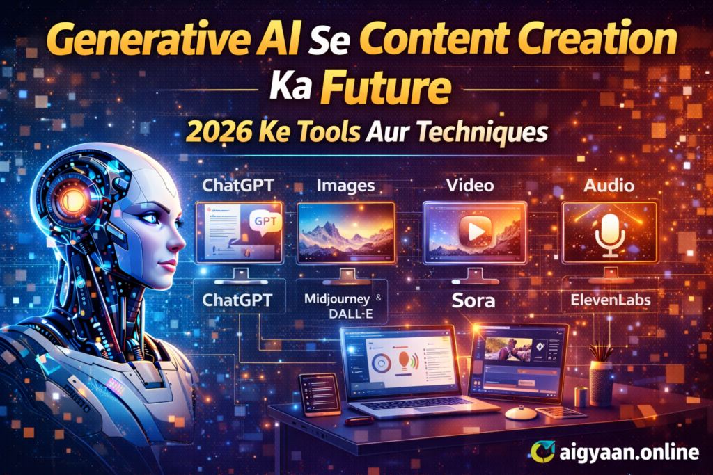 Introduction 2026 ke digital era mein AI tools sirf tech experts ke liye nahi, balki freelancers, office workers aur content creators ke liye bhi productivity ka key ban chuke hain.AI aapke repetitive aur mundane tasks ko automate karta hai, taaki aap apne creative aur high-value work par focus kar saken. Is article mein aap samjhenge: AI tools ka practical use productivity ke liye Tools aur techniques jo work efficiency double karte hain Tips aur best practices for 2026 AI Tools Ka Role Productivity Mein AI tools aapke workflow ko streamline karte hain: Tasks ko automate karna Quick data analysis Content generation Scheduling aur reminders Collaboration aur communication Isse time save hota hai aur efficiency increase hoti hai. Top AI Tools for Productivity (2026) 1️⃣ ChatGPT – Writing & Research Assistant Use Cases: Draft emails, reports, articles Summarize documents Generate ideas Benefit: Time saving aur creative brainstorming faster 2️⃣ Notion AI – Smart Workspace Use Cases: Task management Meeting notes summary Project planning Benefit: Organized workflow aur faster planning 3️⃣ Trello + AI Plugins – Task Automation Use Cases: Auto task assignment Deadline tracking Workflow automation Benefit: Reduced manual follow-up aur better collaboration 4️⃣ Midjourney / DALL·E – Visual Content Creation Use Cases: AI-generated graphics Social media posts Blog visuals Benefit: Creative output fast, no designer required 5️⃣ Sora / Pictory – Video Content Automation Use Cases: Text to video Auto subtitles Short-form content generation Benefit: Save hours in video creation 6️⃣ ElevenLabs – AI Voice & Audio Use Cases: Podcasts, voiceovers Multilingual audio content Benefit: Realistic voice generation in minutes Tips to Double Productivity Using AI Identify Repetitive Tasks: Sabse pehle manual aur repetitive kaam identify karein. Right Tool Selection: Apni needs ke hisaab se AI tool choose karein. Integrate Tools: Multiple AI tools ko workflow me integrate karein. Human Oversight: AI-generated results ko review karein for accuracy. Continuous Learning: AI aur new tools ke updates se apni skills upgrade karein. Productivity Ka Practical Workflow Example Scenario: Blogger / Content Creator Idea generation → ChatGPT Blog draft → ChatGPT + Grammarly Visuals → Midjourney Video snippets → Sora Social scheduling → Notion AI + Trello Result: 1 week ka kaam 2–3 din me complete ho sakta hai, without compromising quality. AI Productivity Ka Future (2026–2030) AI aur automation tools daily workflow ka integral part banenge Collaboration aur project management AI-assisted ho jayega Creative industries aur office workflows faster aur smarter banenge Continuous skill improvement aur AI adoption mandatory ho jayega Conclusion AI tools ka sahi use productivity ko double kar sakta hai, repetitive tasks ko automate karke aur creative work ko fast-track karke.2026 tak, AI aur humans ka collaboration har professional ke liye competitive advantage ban chuka hoga. aigyaan.online ka mission hai aapko practical AI tools aur productivity hacks simple aur actionable way mein samjhana. 🚀 Call To Action (CTA) Agar aap apni productivity aur workflow efficiency 2026 ke AI tools ke saath boost karna chahte hain: Bookmark karein aigyaan.online ✅ Share karein article apne colleagues aur friends ke saath Comment karein: aap kaunsa AI tool apni productivity ke liye use karenge? Aur daily AI + Technology tips ke liye aigyaan.online ko follow karein